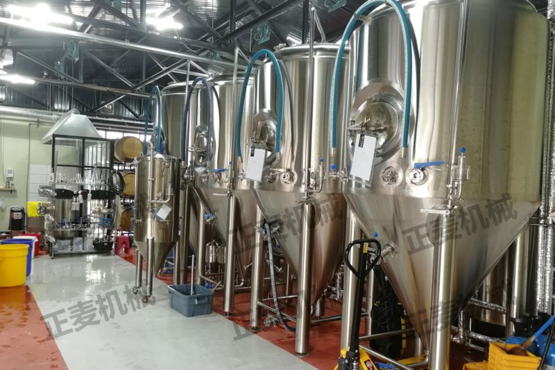 发酵是啤酒生产中极其重要的工艺过程。是一个有酵母参与的复杂的生化反应过程,发酵罐为锥底圆柱形,罐体具备自身冷却装置,可很容易地控制发酵温度;罐底为锥形,回收酵母及清洗都很方便;罐体具有CIP清洗系统,保证了生产中的卫生安全。具备了先进的国际发酵工程技术,可采用PLC自动控温技术。全过程控制啤酒发酵。